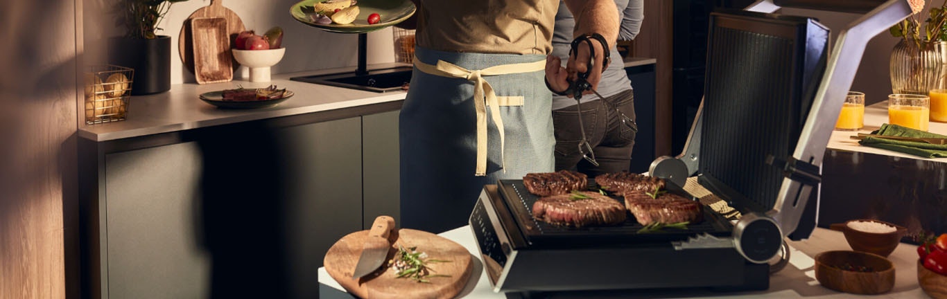 Chcete na svojich hostí urobiť dojem dokonale grilovaným steakom, hamburgerom alebo kuraťom? Využite funkčné, prednastavené programy, ktoré automaticky upravia teplotu podľa vášho pokrmu. Môžete sa s hosťami s istotou rozprávať s vedomím, že váš pokrm bude chutiť dokonale.