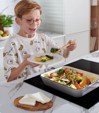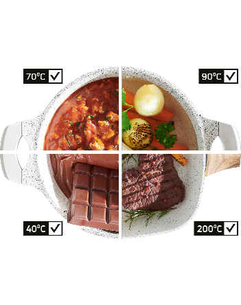 Obed pre veľkú rodinu? Funkcia AutoBridge umožňuje variť vo väčších hrncoch na oboch zónach súčasne! Doska rozpozná veľkú nádobu a automaticky spojí zóny do varnej plochy zodpovedajúcej tvaru hrnca. Vďaka tomuto intuitívnemu riešeniu uvaríte rýchlejšie a efektívnejšie!