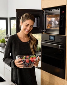 Musíte rýchlo pripraviť väčšiu porciu mäsa, ale mäso je zamrznuté? Nerobte si starosti. Nastavte čas a mikrovlnná rúra potravinu rýchlo rozmrazí. Bez nutnosti predchádzajúceho vybratia z mrazničky hodiny vopred, ktoré je navyše spojené s množením baktérií. S mikrovlnnými rúrami Amica vždy šetríte čas!