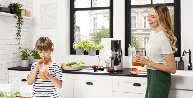 Ten okamih, kedy sa vo vnútri nahromadí dužina a spomalí odšťavovač… sa s odšťavovačmi Amica nikdy nestane! Sitko sa môže otáčať v dvoch smeroch, takže upchávanie časticami ovocia a zeleniny už nie je problém! Keď sa dužina začne v odšťavovači upchávať, zapnutím opačného smeru sa sitko bude otáčať v opačnom smere a upchatie sa odstráni. Váš odšťavovač bude vždy fungovať hladko a efektívne!