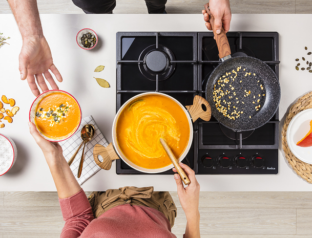 Varíte viac? Na plynovej varnej doske Amica máte viac miesta na väčšie hrnce! Vďaka novej konštrukcii sa zväčšili vzdialenosti medzi horákmi, avšak štandardné rozmery dosky zostali zachované. Preto môžete teraz používať väčšie nádoby - a to hneď niekoľko naraz. Väčší priestor pre väčšie pohodlie pri varení!