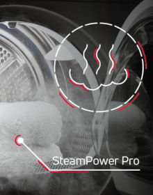 Unikatowy program, który dwukrotnie wykorzystuje parę: na początku cyklu do skutecznego usuwania zabrudzeń i dezynfekcji oraz na końcu do zmiękczania tkanin i zmniejszenia zagnieceń.