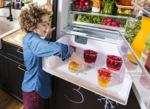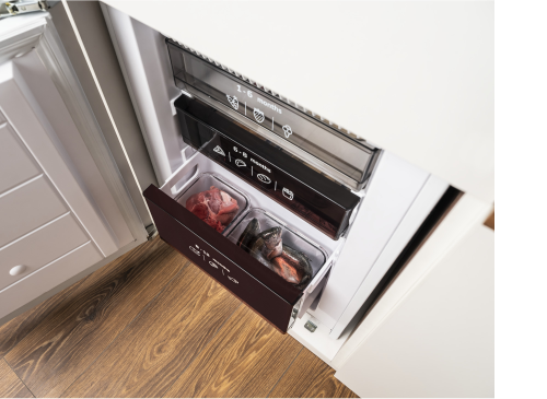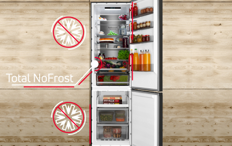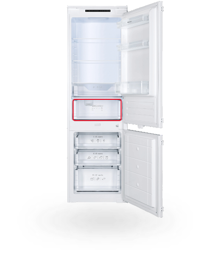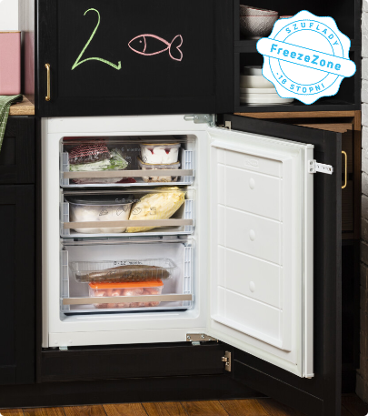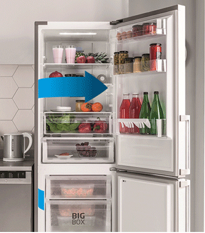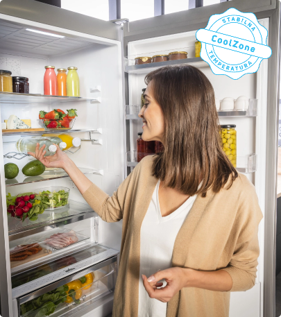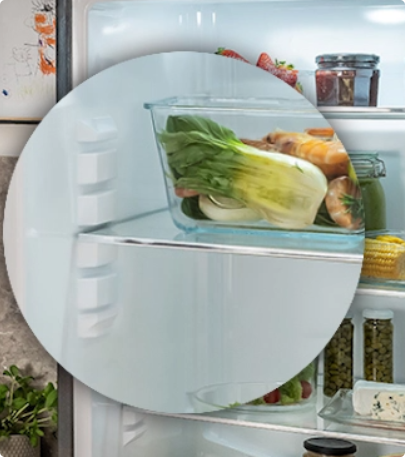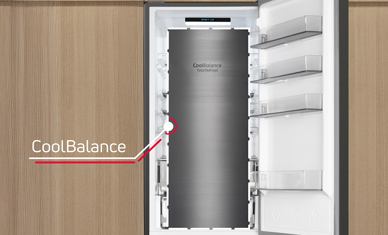 Aj keď chladničku otvoríte a zatvoríte, teplota vo vnútri zostane rovnaká! Vďaka špeciálnemu kovovému panelu na zadnej stene vo vnútri chladničky je vnútorná teplota menej náchylná na kolísanie pri otváraní a zatváraní dverí chladničky. To pomáha udržať potraviny dlhšie čerstvé, udržuje stabilnú teplotu a zároveň zlepšuje energetickú účinnosť a dodáva interiéru skvelý vzhľad.